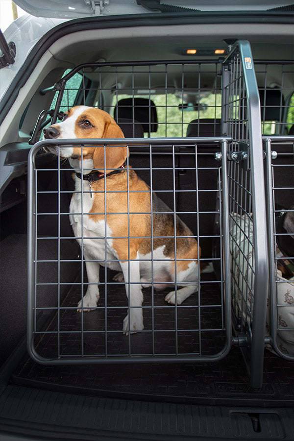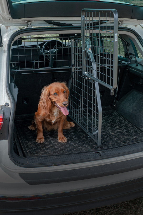 An affordable and stylish alternative to a dog crate that allows for enhanced boot organisation